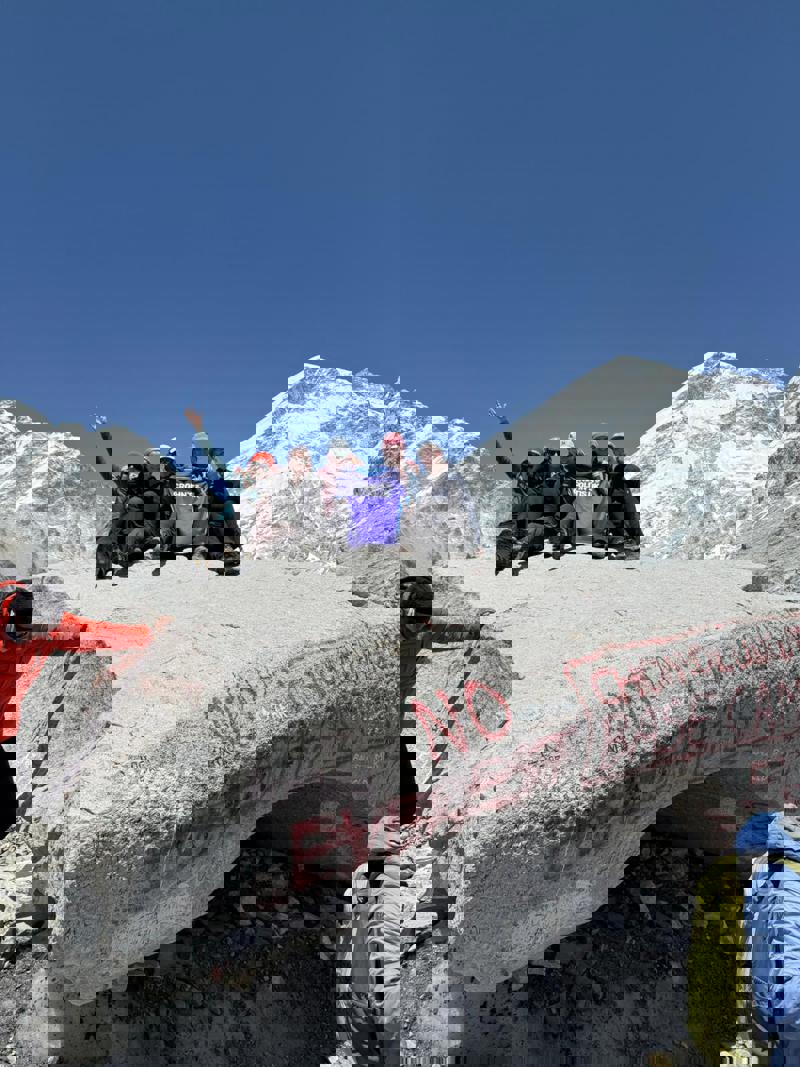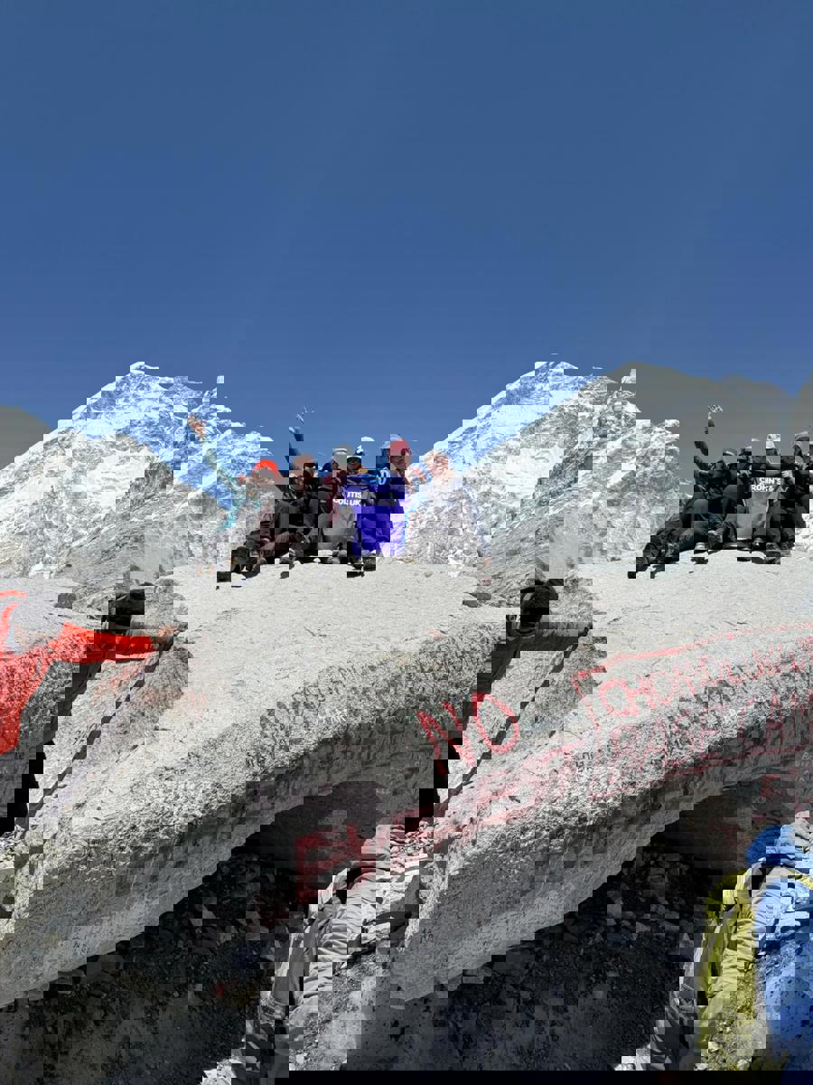 Jenna celebrates reaching Base Camp with her fellow trekkers