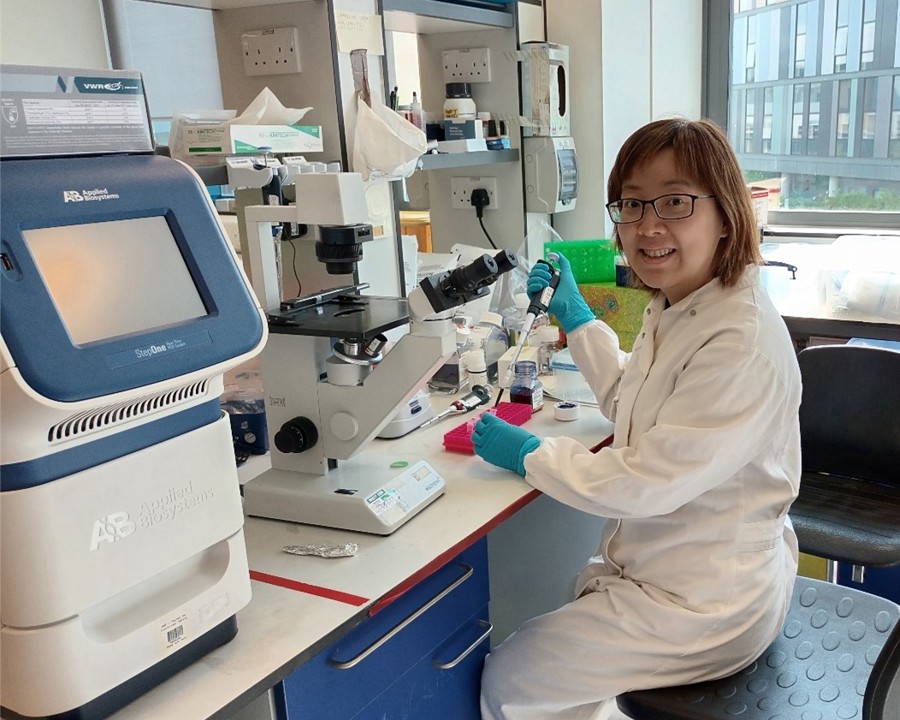Figure 2: Phoebe Lau, our research scientist working on cells from our patients in our lab, at the Centre for Inflammation Research, University of Edinburgh