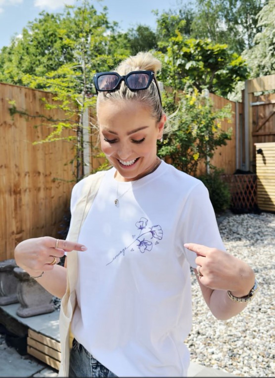 "I'm so proud to be an Ambassador for Crohn's & Colitis UK. I'd say to anyone else with Inflammatory Bowel Disease that you might feel overwhelmed sometimes, but you're not alone,” says Amy. “There's so much strength in the Crohn's & Colitis UK community and it's such an amazing charity. Raising awareness is vital and it takes real courage to live with Crohn's or Colitis every day, so I wanted to celebrate that with this design."