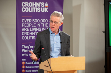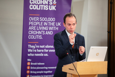 We also heard from TV weatherman Calum MacColl, who was diagnosed aged 13 with Crohn’s Disease. He shared his experience of struggling for over a year with symptoms and being continually treated for diarrhoea with an antidiarrheal drug before being diagnosed. He told guests: