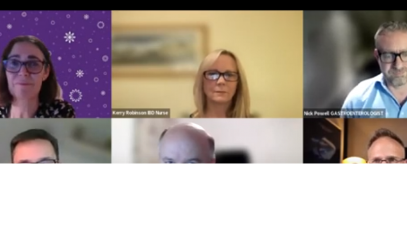 Ruth Wakeman, Director of Services, Advocacy & Evidence at Crohn's & Colitis UK, chaired the panel. She was joined by gastroenterologists Prof Charlie Lees, Dr Nick Kennedy, Dr Nick Powell and Dr Tariq Ahmad, and IBD nurse specialist, Kerry Robinson.