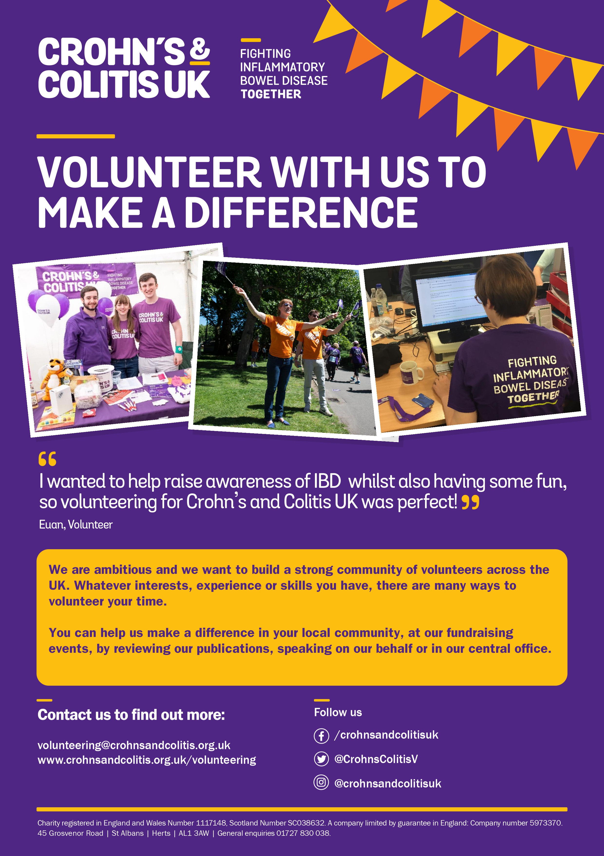 Alongside this, are community-focussed, awareness and fundraising activities designed to spread the news of Inflammatory Bowel Disease – what it is, who it affects and how you can help, by getting involved as a fundraiser, member, volunteer or general supporter of the charity.