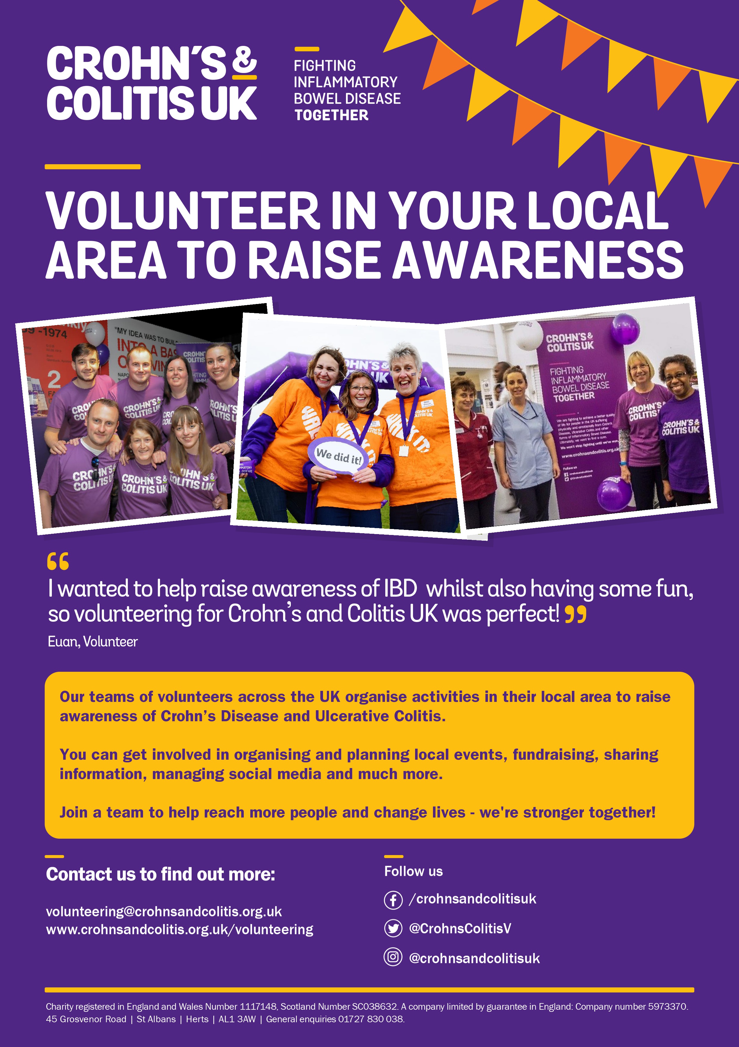 If you’re interested in helping us continue to make a lasting impact in the lives of people affected by Crohn’s Disease or Ulcerative Colitis, then volunteering with a Local Network is a great way to do this, by being active in your local community.
