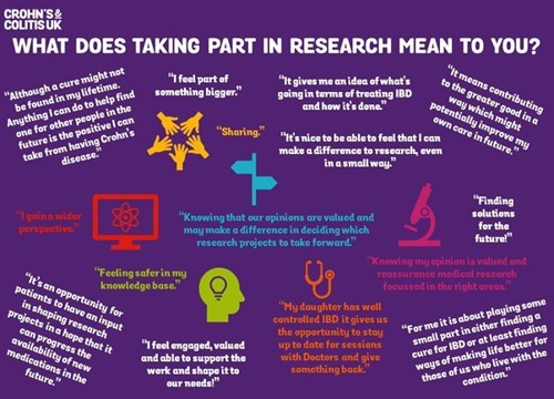 This input on ongoing and future research studies is crucial to make sure that they work for people living with Crohn's and Colitis. By sharing your views and experiences you can have a very real effect on new treatments and support tools being developed for people affected by the conditions.