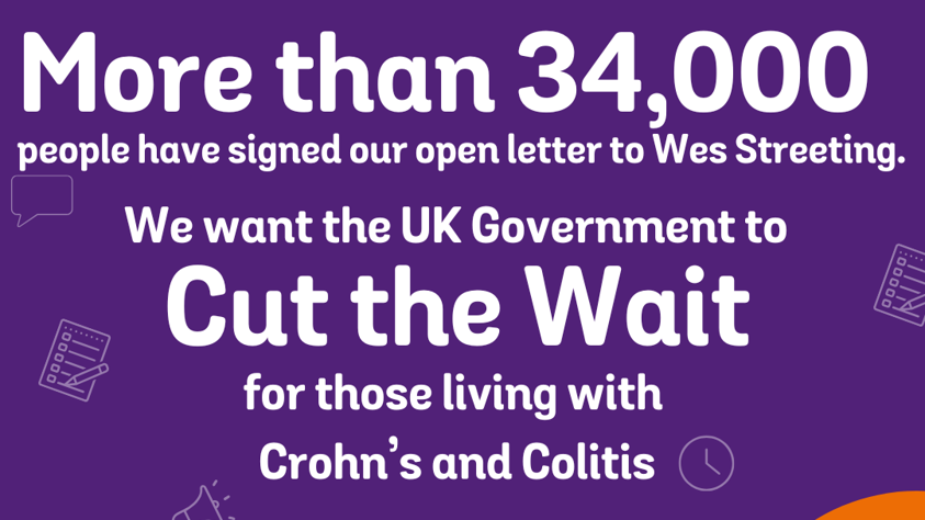 Alongside our letter, we’ve posted a supporting video on our socials to mark the occasion. The video features one of our dedicated IBD nurses, Michelle Gadsden, along with some of our amazing supporters Emma, Meg, and Ryan, who have all signed the letter and are backing our call to Cut the Wait.
