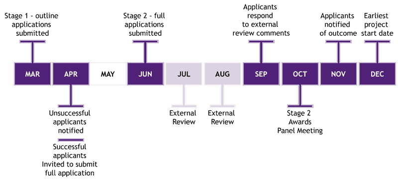 We anticipate letting applicants know the outcome of Stage 1 in April. Successful applicants will be invited to submit a full application. You may be asked to take into account feedback from the Committee when writing the full application.